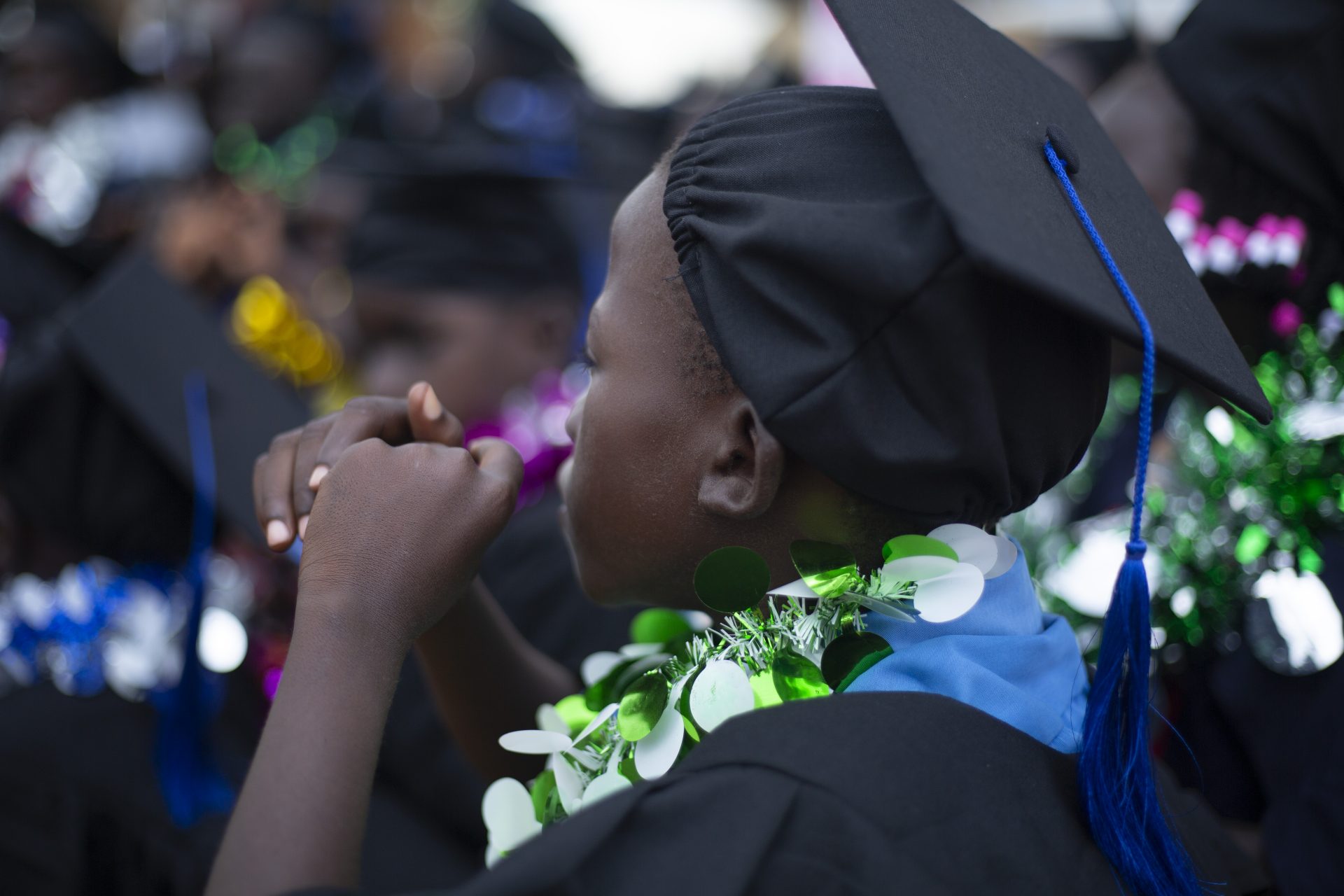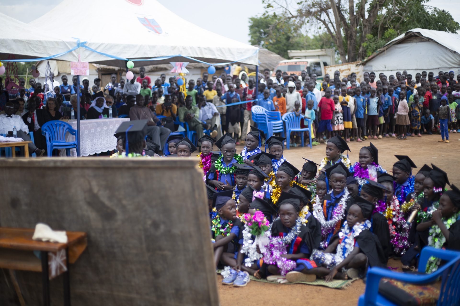 Der Höhepunkt der Veranstaltung war der Umzug der kleinen Absolventen durch das Lager, bevor sie in die Abschlussräume der Schule zurückkehrten. Die Kinder, geschmückt mit farbenfrohen Festkleidern für den Abschluss, warteten sehnsüchtig darauf, dass sie an die Reihe kamen, die Bühne zu betreten. Jede Mütze und jeder Talar sind ein stolzes Zeichen und konkrete Erfahrung von den Möglichkeiten, die Bildung auch unter schwierigen Umständen bietet. Die Augen der Kinder funkelten vor Träumen und ihr Lächeln widerspiegelte die Einfachheit ihres Glücks. Die Atmosphäre war von Stolz erfüllt, als die versammelten Eltern und Erziehungsberechtigten vor Freude strahlten, und ihre Kleinen die Urkunden erhielten.